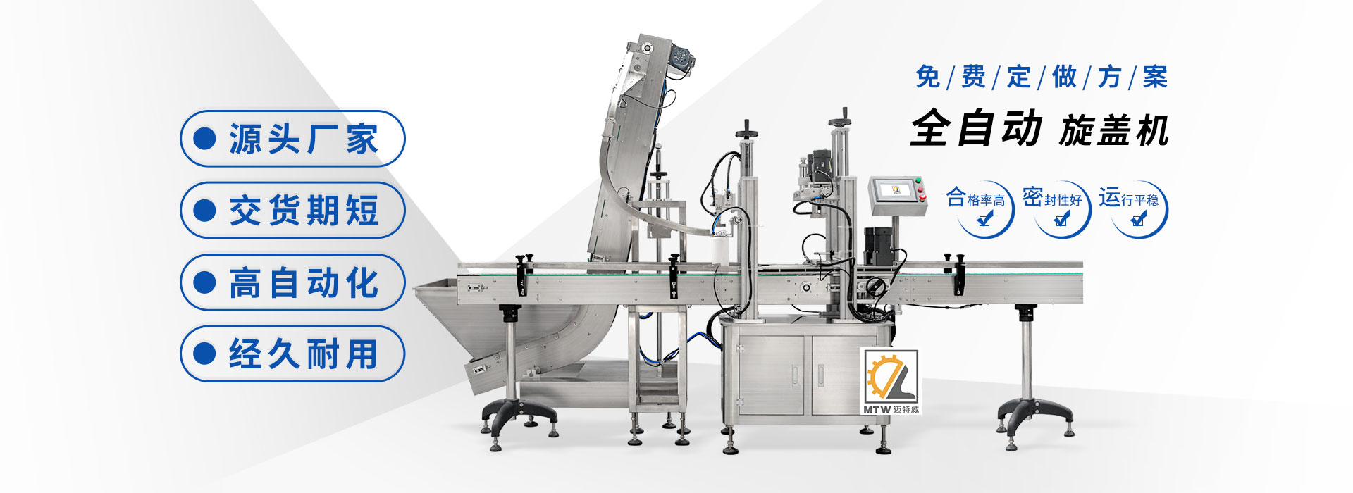 邁特威自動(dòng)化設(shè)備(天津)有限公司坐落于素有京津明珠之稱的天津·武清區(qū),是國(guó)家高新技術(shù)企業(yè),專注生產(chǎn)、研發(fā)、銷(xiāo)售全自動(dòng)灌裝機(jī)、旋蓋機(jī)、封口機(jī)、貼標(biāo)機(jī)等系列產(chǎn)品,立足京津冀、服務(wù)全國(guó),遠(yuǎn)銷(xiāo)海內(nèi)外,團(tuán)隊(duì)由行業(yè)高技術(shù)人士組成,為國(guó)內(nèi)外食品、日化、糧油、醫(yī)藥等企業(yè)提供滿意的包裝解決方案。
